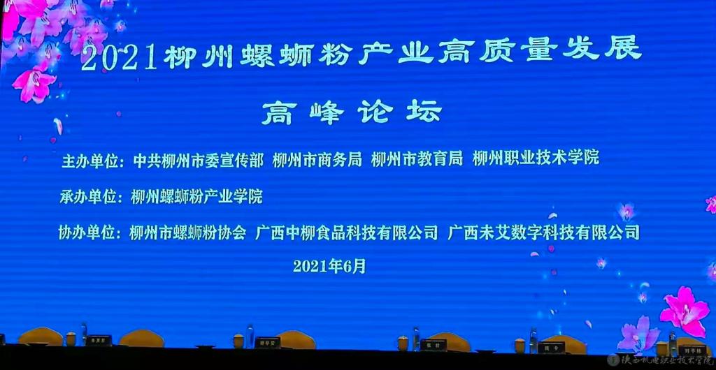 6月17至18日,2021柳州螺蛳粉产业高质量发展高峰论坛在柳州举办,陕西机电职业技术学院副校长张新堂、学校经管与艺术学院党支部书记孟发军应邀参加本次论坛。论坛采用主题宣讲与圆桌论坛相结合,按“柳州螺蛳粉产业‘十四五’发展前瞻”、“柳州螺蛳粉网红经济发展”、“柳州螺蛳粉与中华民族传统文化融合”“特色食品产业学院发展与职业教育发展研究”等四个模块十七个议题有序开展。