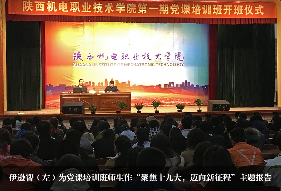 2017年11月28日下午,陕西机电职业技术学院党委书记、院长伊逊智同志为学院第一期党课培训班师生作“聚焦十九大,迈向新征程”主题报告。报告会由学院党委委员、组织部部长、党政办主任赵争东同志主持。