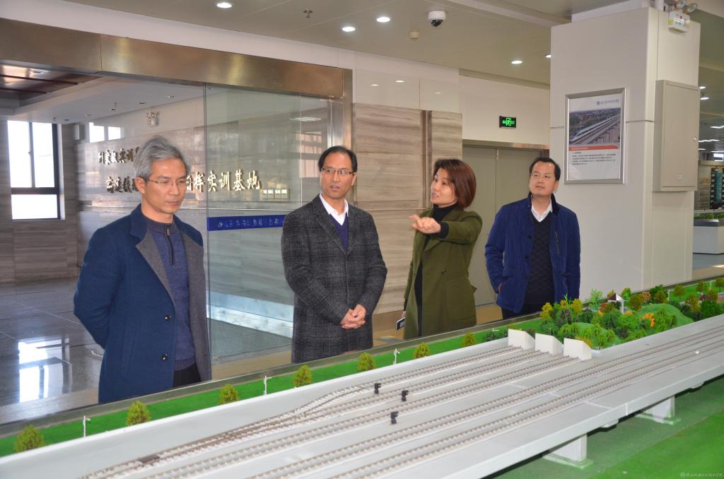 在南京铁道职业技术学院党委副书记、副院长陆勇,院办副主任唐飞的陪同下,伊逊智院长和王迎尉主任参观了南京铁道学院的轨道交通综合实训基地。该基地由高速铁路综合实训中心、地铁综合实训中心和高铁教学站场三大部分构成,目前处于全国领先水平。