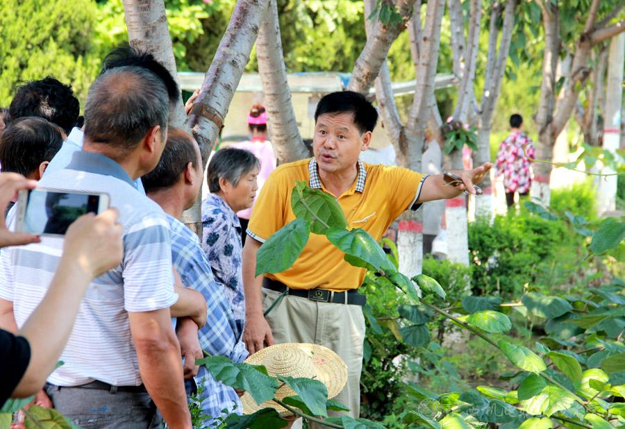 培训采用深入猕猴桃种植基地开展手把手教学的方式进行。谢教授首先从专业理论角度,根据村民种植猕猴桃遇到的实际技术问题展开详细讲解,着重就果树夏季的养护、施肥、浇水、修剪、病虫害防治等管理方法进行了详细培训和技术指导。并进入果园进行实地技术培训,与种植户进行互动,现场亲手示范,解答农户提出的技术问题。
