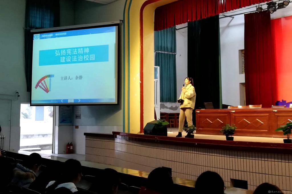 为了让广大师生更进一步的了解、掌握宪法和法律知识,增强法治观念,树立宪法法律权威,弘扬法治精神,加强校园法治建设,推进依法治校进程。学院于2018年11月13日下午在大礼堂举办《弘扬宪法精神 建设法治校园》讲座,由专职辅导员余静老师主讲,17级约700多名学生聆听了本次讲座。