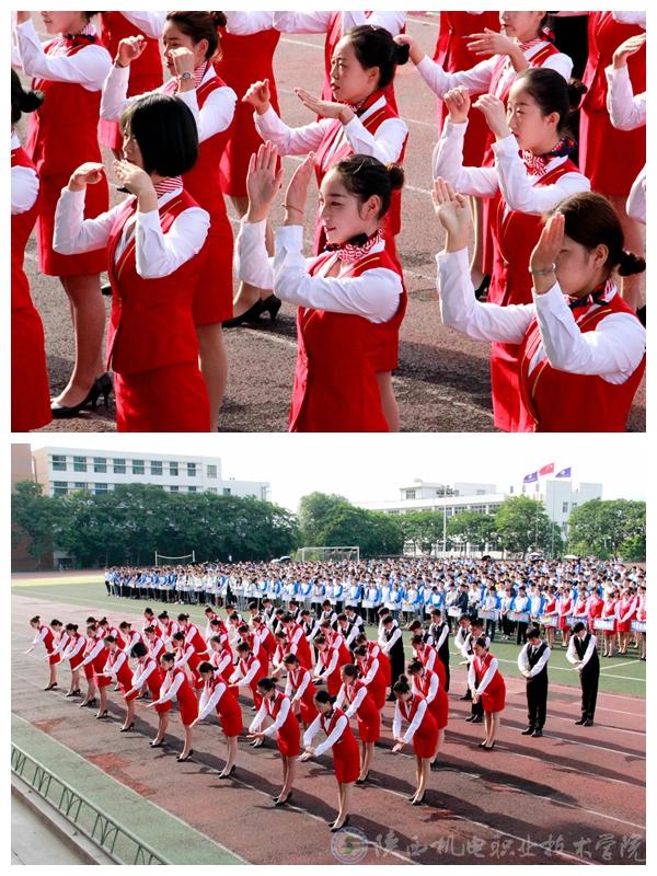 高铁乘务学生代表进行了礼仪操展示,同学们着装规范、姿态优雅,一动一静蕴涵着知性的气质和文明的素养。
