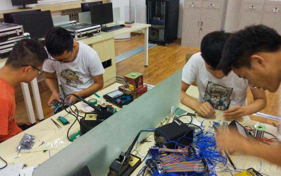 本次大赛学院领导高度重视,为大赛提供了全方位的后勤保障。娄勇、景鹏斌、李鹏三位老师利用假期时间全程指导,队员们刻苦学习,努力实践。竞赛期间加班加点完成任务。