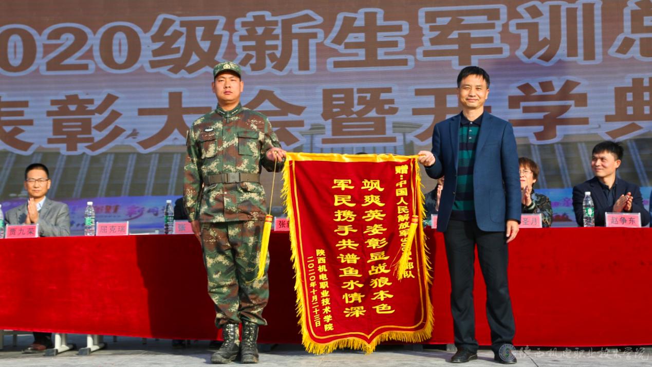 2020级新生军训总结表彰大会暨开学典礼于10月23日下午在蟠龙校区运动场隆重举行,党委副书记、院长向纪明,副院长张新堂、徐圣月、张琴,院长助理赵争东,96874部队营长屈克瑞,各部门负责人以及2020级新生1700余人出席,大会由党委副书记邓新治主持。