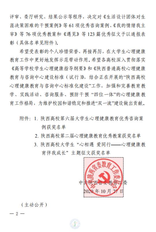 此次实践活动为陕西省各普通高校深入贯彻落实习近平新时代中国特色社会主义思想和党的十九大精神,统筹做好疫情防控和心理育人工作,进一步增强高校心理健康教育针对性和实效性的一次系列活动,经学校推荐、专家评审、委厅研究、结果公示等程序,现予以通报表彰。