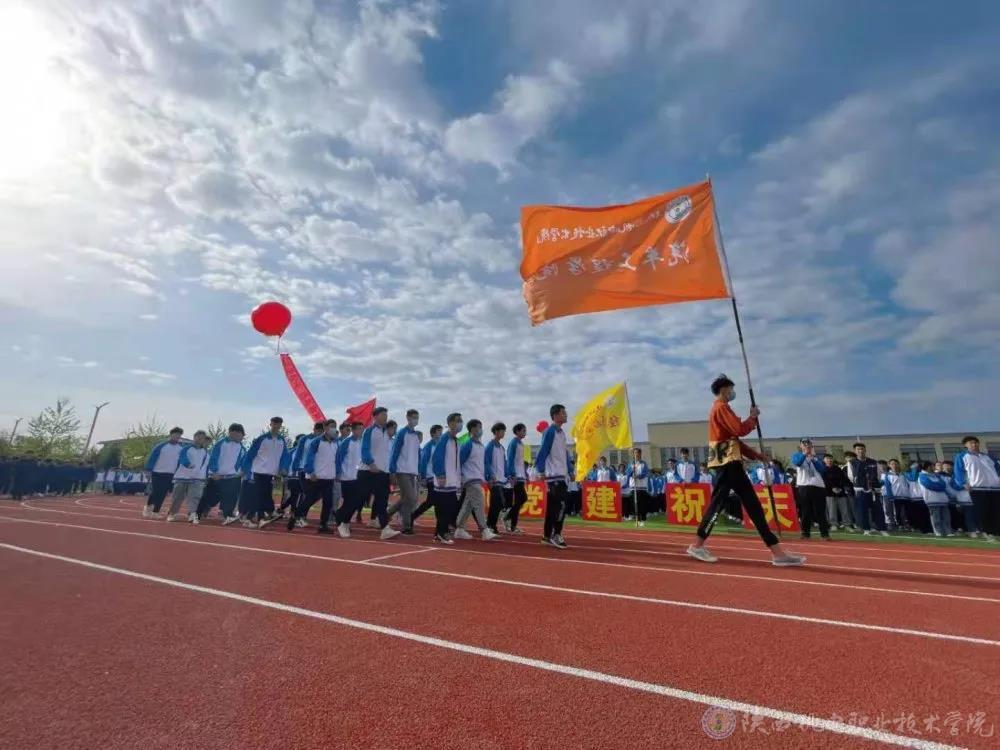 当前,陕西机电职业技术学院全校上下正在深入开展党史学习教育,使今年的春季运动会开幕式呈现出鲜明的党史学习教育成果,展现出昂扬奋进的精神风貌。学院一直以来大力开展阳光体育活动,隆重举办运动会,目的是引导广大同学“走下网络、走出宿舍、走向操场”,坚持“健康向上、不懈奋斗”的体育精神,使坚持体育锻炼成为青年大学生的生活方式和健康时尚。希望全体运动员赛出水平,赛出风格!以优异成绩迎接中国共产党成立100周年。