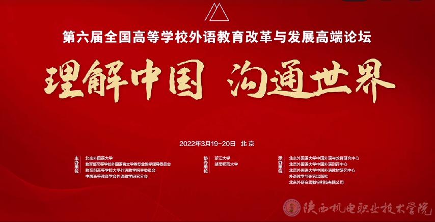 第六届全国高等学校外语教育改革与发展高端论坛于3月20日闭幕。本届论坛主题为“理解中国 沟通世界”。