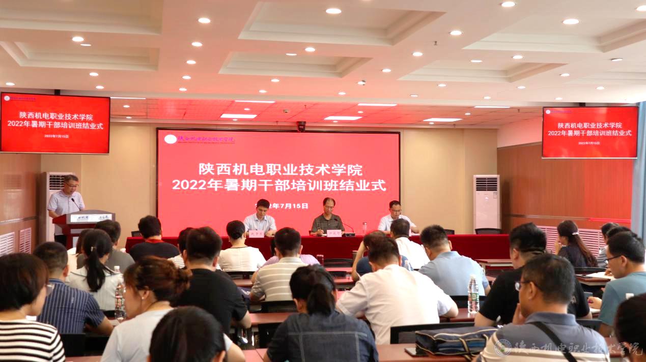 2022年7月15日,陕西机电职业技术学院在宝福路校区汽车机电大楼视频会议室举办2022年暑期干部培训班结业仪式。党委书记伊逊智出席结业仪式并作总结讲话,党委副书记、院长向纪明,党委委员、院长助理赵争东出席会议。全校科级以上干部、系主任、室主任参加会议,会议由赵争东同志主持。