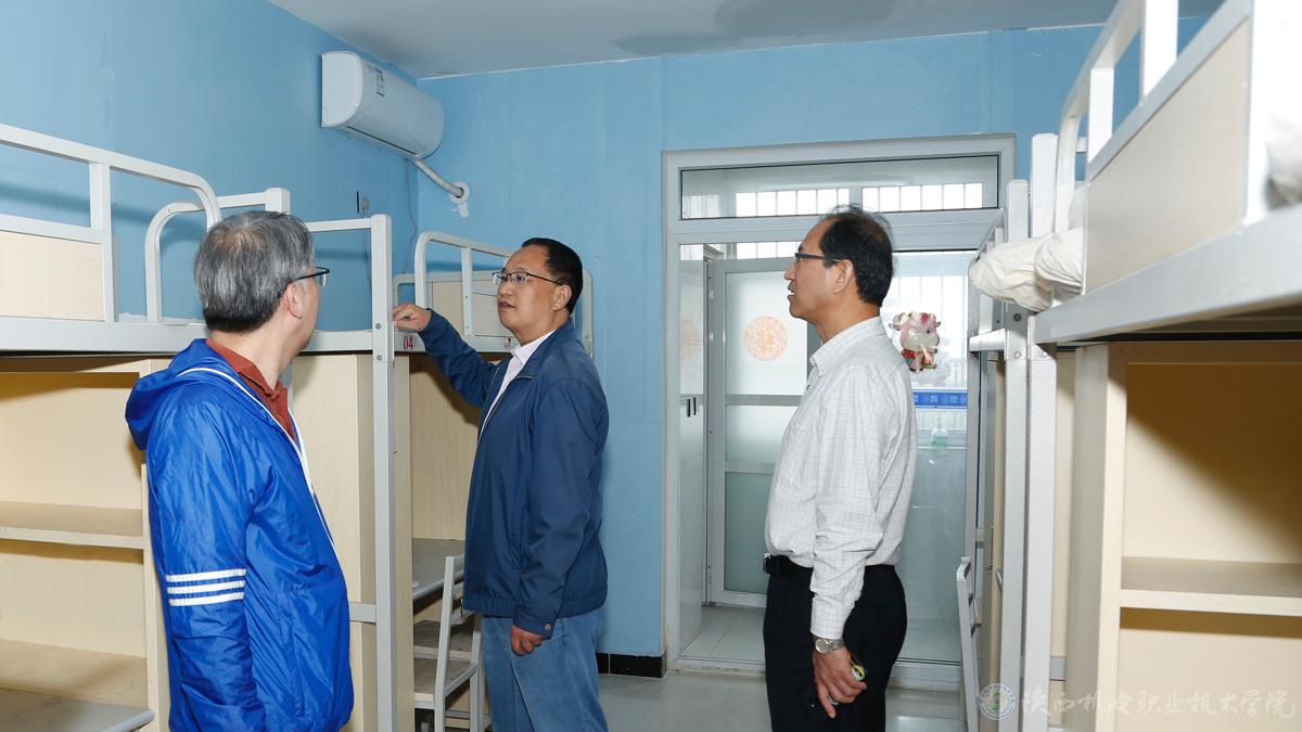 为抓实开学准备工作,迎接同学们返校“回家”,9月26日,校党委书记伊逊智、院长向纪明再次带队检查指导了蟠龙校区开学前准备工作,深入学校生活区、实训大楼等地检查指导工作。院长助理赵争东、学生处处长王建斌、后勤保障处副处长卢彦峰及相关项目负责人同行。