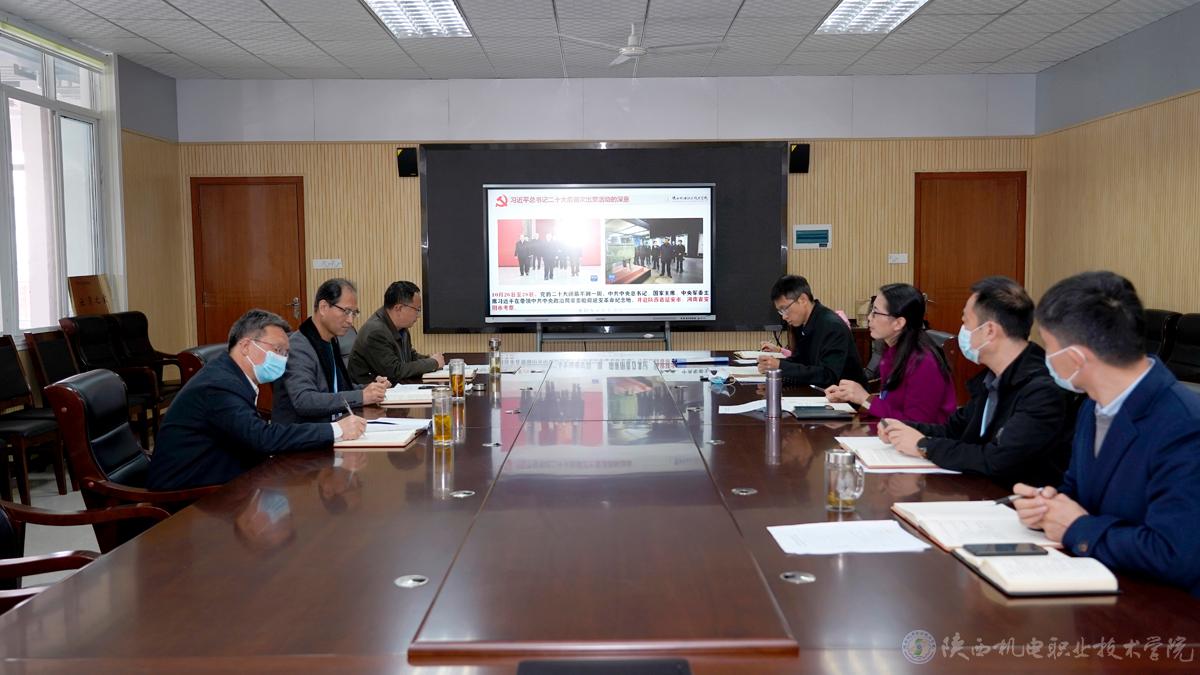 10月31日下午,陕西机电职业技术学院在蟠龙校区组织召开2022年第7次党委理论学习中心组集体学习会,传达学习党的二十大精神,习近平总书记带领新一届中央政治局常委瞻仰延安革命纪念地时的重要讲话精神。党委书记伊逊智主持会议。