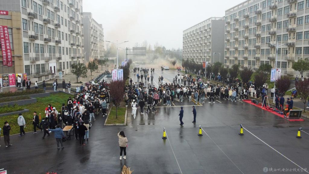 11月9日下午1点,2022年陕西机电职业技术学院联合宝鸡市公安局、宝鸡市金台消防救援大队在蟠龙校区龙池大道举行全校消防应急逃生演练。宝鸡市公安局经文保支队雷战卫支队长、金台消防救援大队黄兴利大队长、金台分局经文保大队党斌大队长及学院党委书记伊逊智,党委副书记、院长向纪明,党委副书记、纪委书记齐晓军,副院长张新堂及宣传部部长李明出席本次演练活动,活动由保卫处副处长常小凯主持。