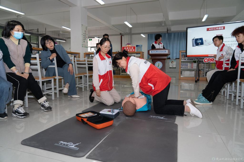 白鹿原急救教育学院5名应急救护师采用讲解和实操相结合的方式,就徒手心肺复苏、AED的使用、气道异物梗阻的急救方法进行了培训。
