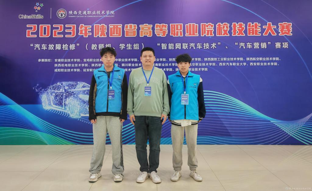 2023年5月1日-3日,陕西省高等职业院校技能大赛汽车故障检修教师赛、学生赛在陕西交通职业技术学院进行,我校师生在该比赛中双获佳绩。交通运输学院张超龙老师获得汽车故障检修赛项教师赛第3名,由张超龙、谭飞老师辅导的学生张永强、武志强获得汽车故障检修赛项学生赛第6名。