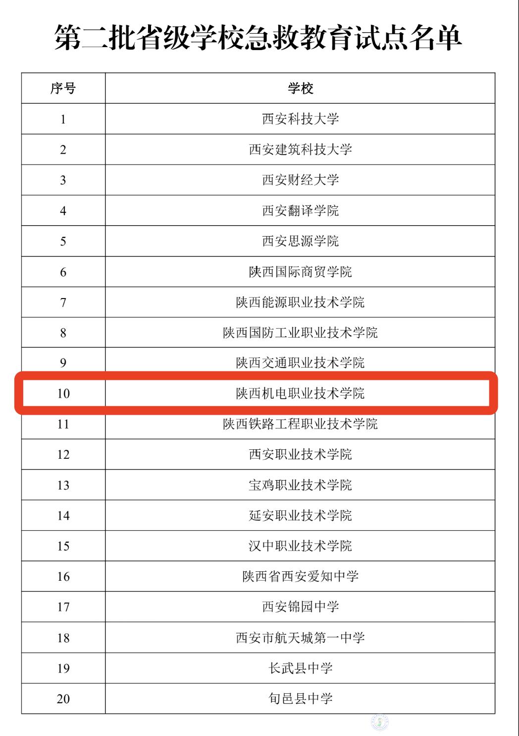 5月17日,陕西省教育厅公布了第二批省级学校急救教育试点单位名单,陕西机电职业技术学院成功入选。