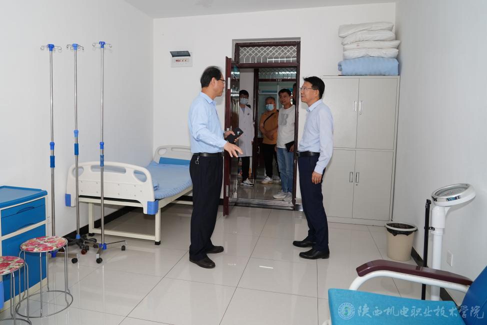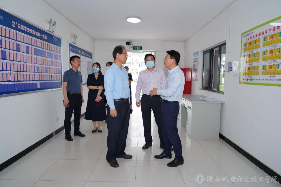 督查组在学校党委书记伊逊智,党委副书记、纪委书记陈红梅,党政办、宣传部、保卫处、学生处、后勤保障处等部门负责同志的陪同下对学校隐患排查整治工作、校园日常安全管理、消防安全、公共卫生、疫情防控、食品安全、后勤保障等方面进行全面检查,实地走访检查了学校食堂、学生宿舍、医务室、大学生心理健康中心、110指挥中心、实习实训室、产业学院。