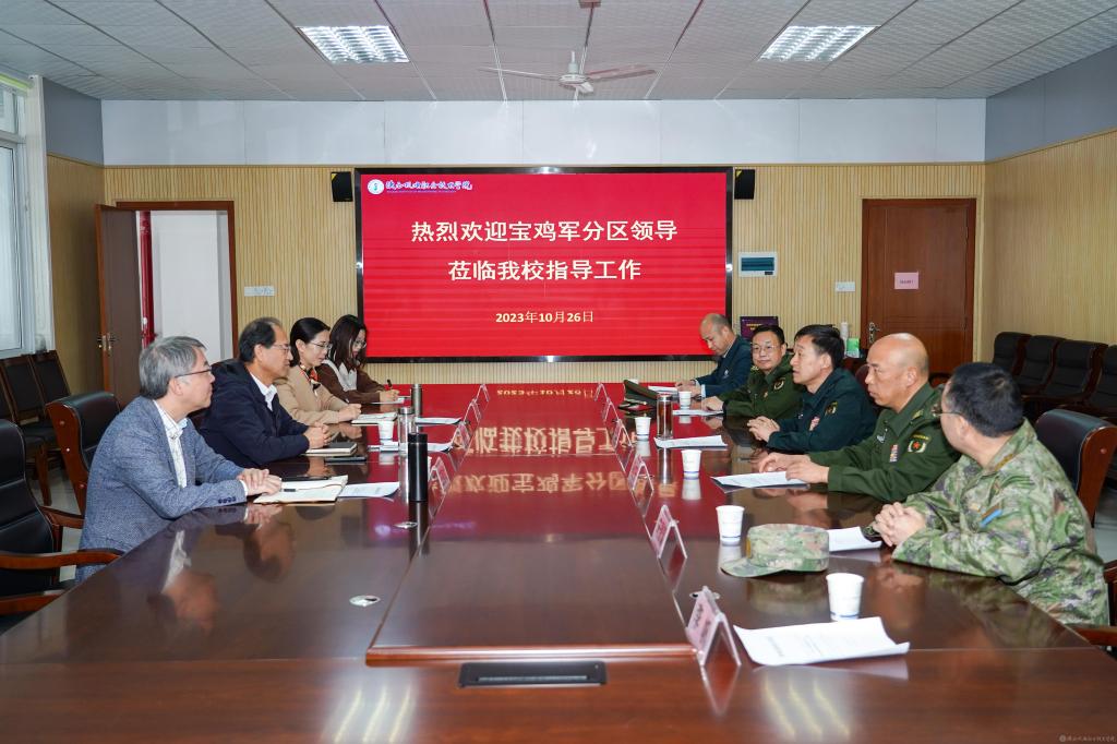 10月26日上午,宝鸡军分区司令员宋军政、副司令员杨红升、金台区人武部部长轩继东、政委宋景富等领导莅临我校检查指导工作,学校党委书记伊逊智,党委副书记张琴,党委学工部部长、学生处处长、人武部部长王建斌等陪同检查。