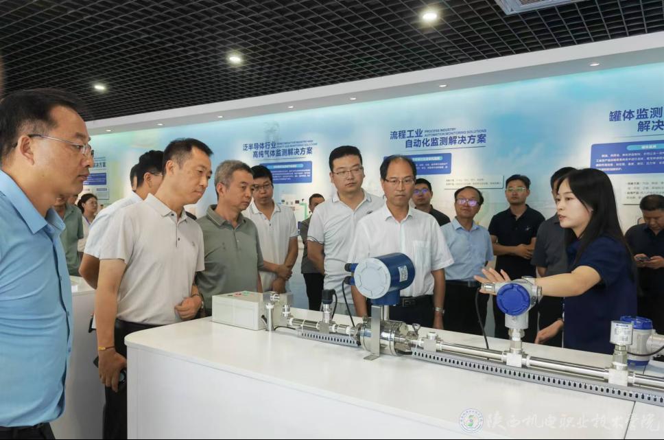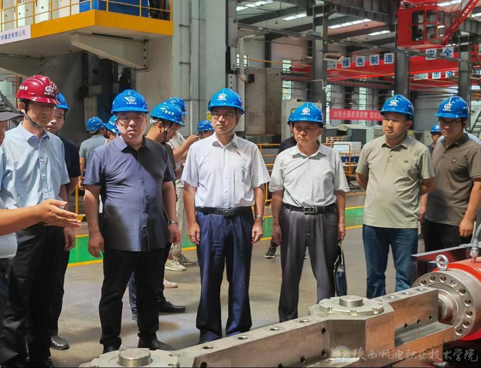 2024年8月19日,宝鸡市组织开展第五次产教融合院校“企业行”活动,市政府副秘书长苗崑,市教育局、市科技局、市工业和信息化局、市人力资源社会保障局负责同志,36所大中专、技工院校负责同志参加活动。陕西机电职业技术学院党委书记伊逊智带队,党委委员、副校长张克,招生就业处处长朱云洁,铁道工程学院院长卢彦峰,智能制造学院机械系主任孙钊、铁道系主任李鑫参加调研活动。