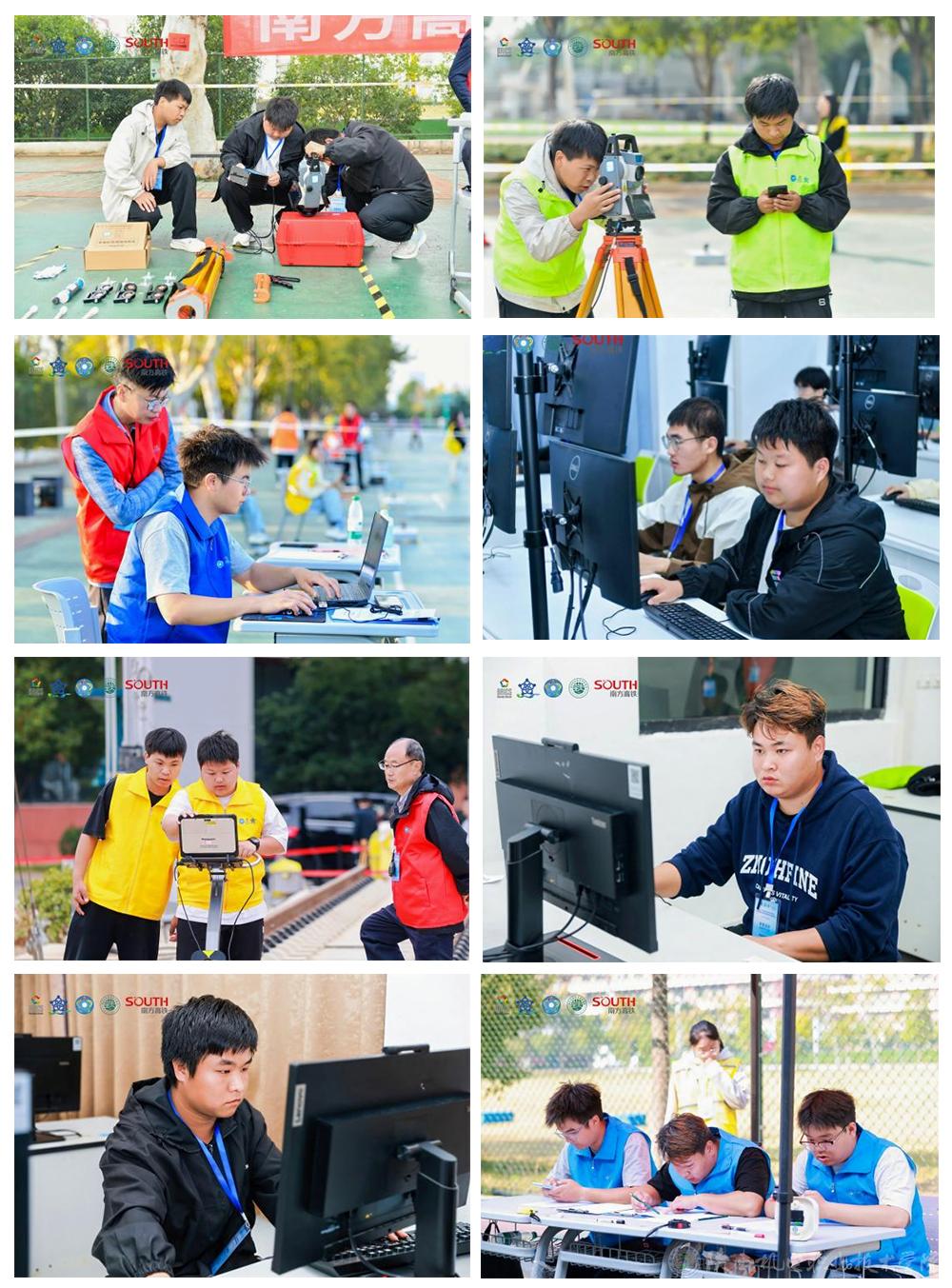 本次大赛为团体赛,每支参赛队由3名选手组成,要求合作完成涉铁自动化监测、工程施工测量、轨道精测精调三个分项,共五个小项的竞赛内容。尽管比赛项目多,知识面广,技能点难度高,观测难度大,但我院学子沉着冷静、团结协作、精益求精,以较高水平完成了所有分赛项的比拼,并取得优异成绩。