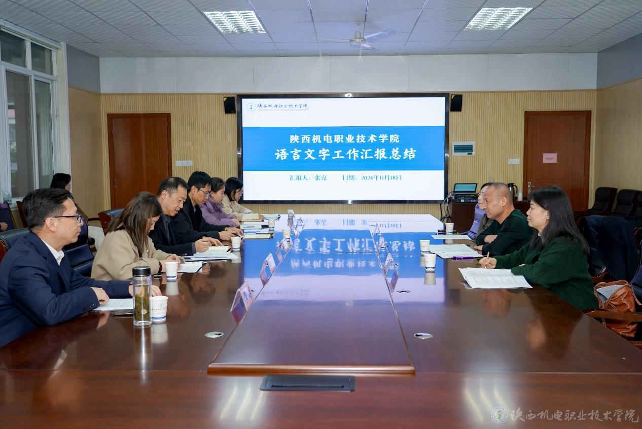 11月18日下午,陕西省高等院校语言文字达标工作调研会议在陕西机电职业技术学院蟠龙校区图书馆二楼会议室顺利召开。专家组由宝鸡文理学院国家语言文字推广基地执行主任王应龙教授,西北大学文学院教授冯鸽,渭南师范学院文学院教授、省级测试员孙萍萍组成。学校党委委员、副院长、语言文字工作领导小组副组长张克,以及党委宣传部、党委学工部(学生处)、校团委、教务处等相关部门负责人出席会议。会议由语言文字工作办公室主任、基础部副部长李明主持。