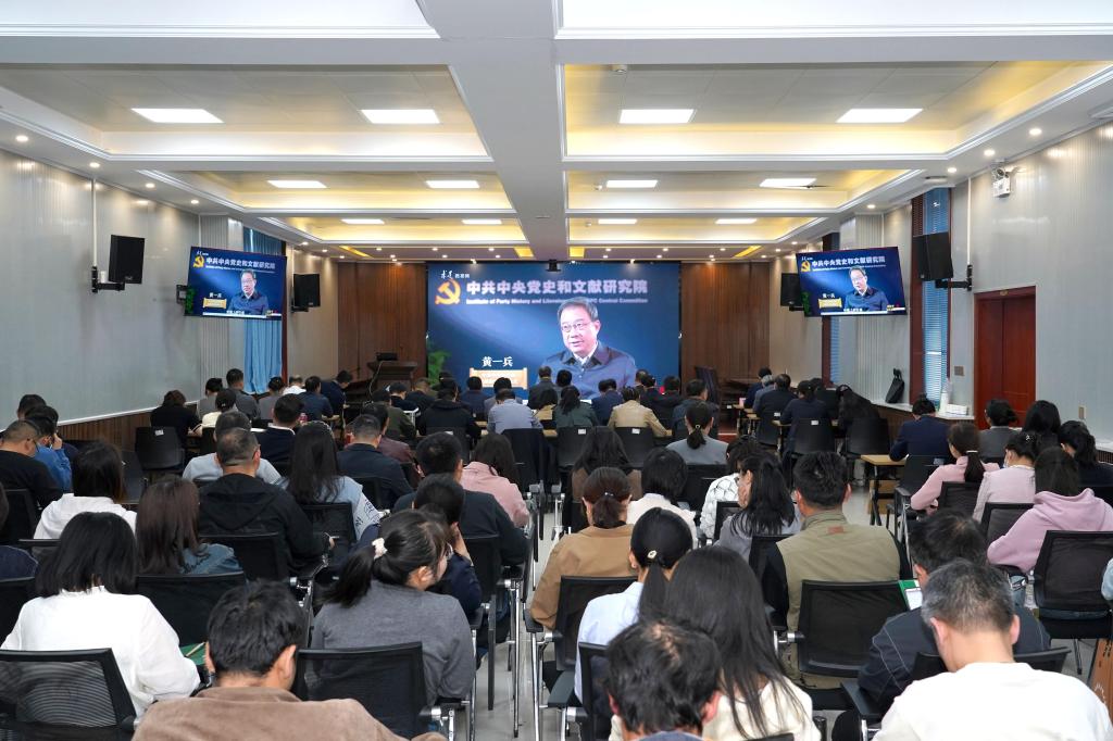 陈红梅领学习近平文化思想。她从思想内涵、核心要义、传承发展等方面系统阐释了深入学习贯彻习近平文化思想的重要价值和意义。她指出,高校是人才培养的高地以及多元文化交流的汇聚之处,要认真学习习近平文化思想,牢牢把握党对意识形态工作的主导权,结合具体工作,通过“大思政”的视角引领意识形态工作新布局。并带领与会人员观看了中共中央党史和文献研究院副院长黄一兵讲解的《如何理解习近平文化思想的丰富内涵?》视频。