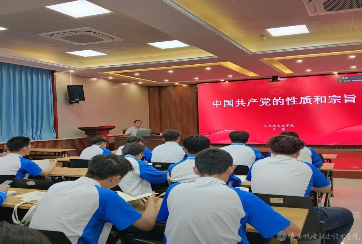 马克思主义学院负责人王康作题为《中国共产党的性质和宗旨》的专题报告。