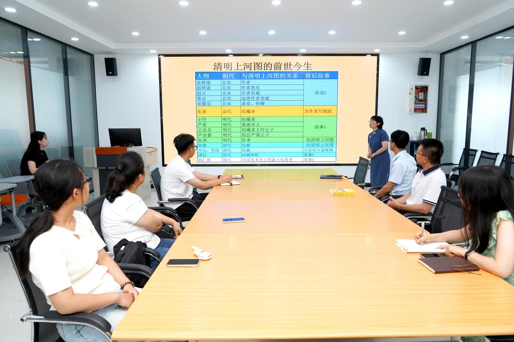 徐红梅凭借深厚的艺术史造诣,将这幅被誉为“北宋社会百科全书”的旷世杰作娓娓道来。画卷之上:鳞次栉比的商铺酒肆、川流不息的市井人群、形态各异的舟船车轿、精巧绝伦的虹桥结构……每一个细节都成为解读北宋都城汴京繁华盛景与社会肌理的密码。她的分享生动详实,引人入胜,让在场教职工仿佛置身于汴河两岸的喧嚣与生机之中,亲身参与这场跨越时空的文化解码。