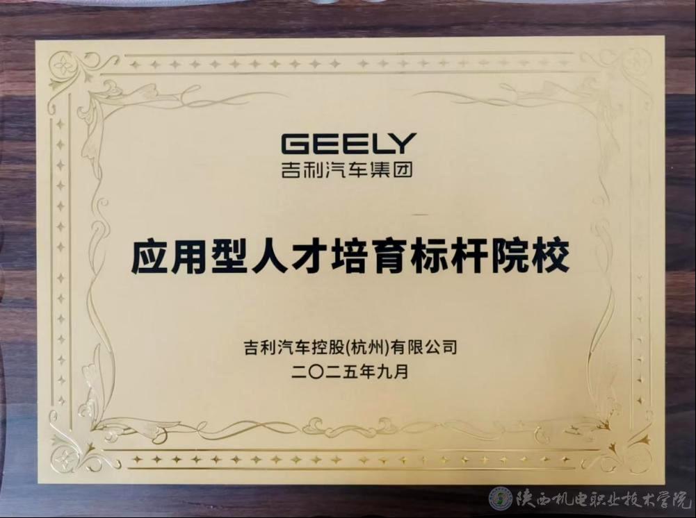 本次活动以“匠星正发光”为主题,汇聚了宝鸡市政府代表、职业院校负责人、行业专家及吉利汽车集团高管,共同推动汽车产业人才生态的共建与升级。陕西机电职业技术学院凭借在校企协同育人方面的卓越成效,被授予“2025年度应用型人才培育标杆院校”荣誉称号。