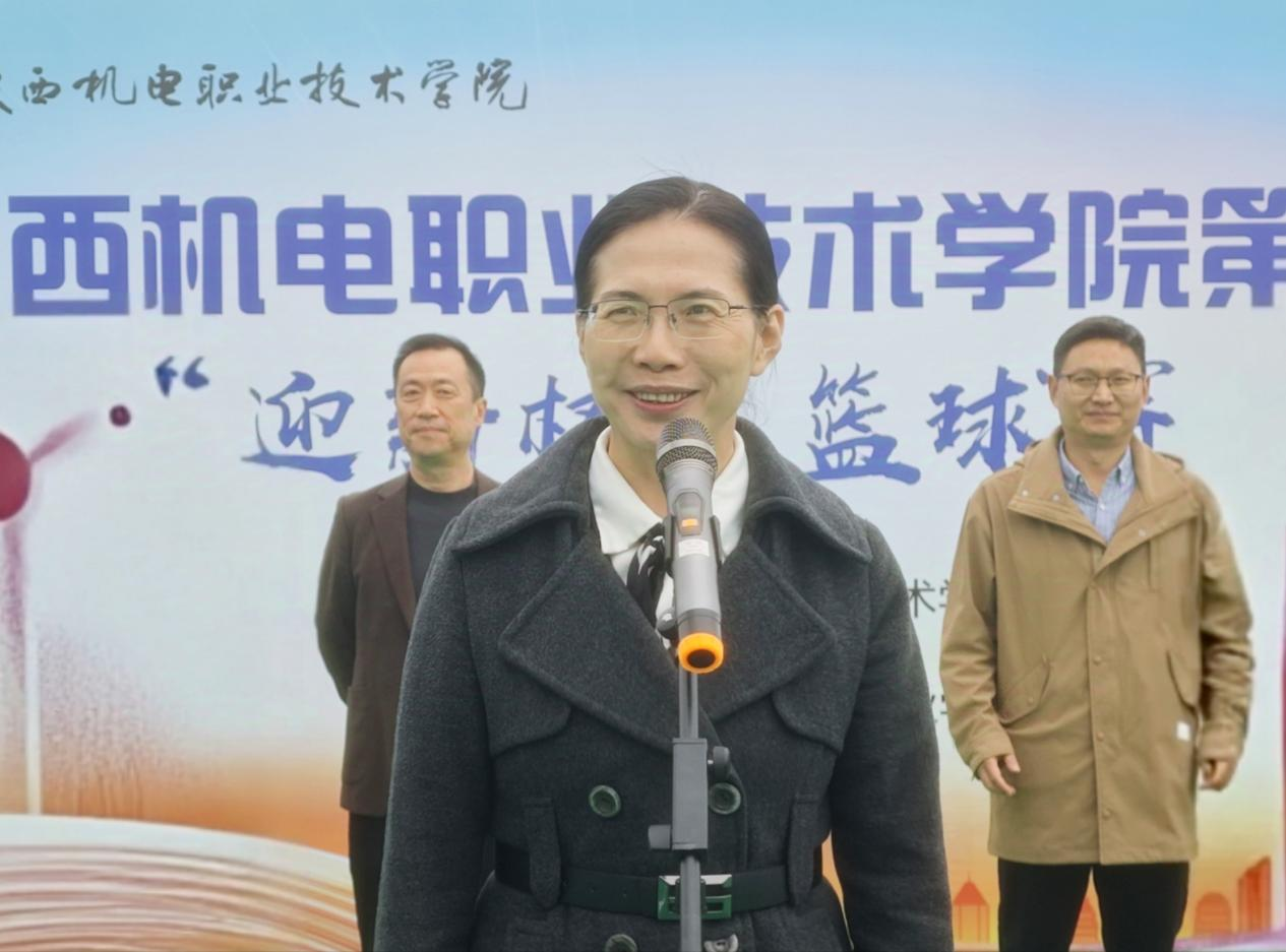 在热烈的掌声中,党委副书记张琴郑重宣布:“陕西机电职业技术学院第六届“迎新杯”篮球比赛开幕!”并由党委委员、副院长张克为首场比赛开球。