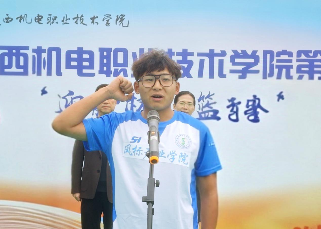 运动员代表电子信息学院王成同学庄严宣誓,承诺全体运动员将严格遵守赛事规则,尊重裁判判罚,以饱满的热情和昂扬的斗志投入比赛,赛出水平、赛出风格,用实际行动弘扬体育精神。裁判员代表智能智造学院李云龙同学则以“公正执裁、恪守职责”为誓言,为赛事公平保驾护航。