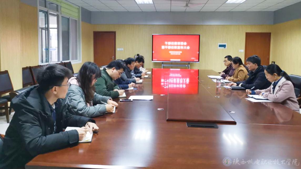 12月10日上午,学校党委在蟠龙校区图书馆二楼会议室召开干部任前谈话暨干部任职宣布大会。党委委员、院长助理、组织部部长赵争东出席会议并讲话,党委组织部综合科科长张玉琼宣读任职文件,纪律检查室主任王芙蓉作集体廉政谈话。新任职干部,经管与艺术学院科级以上干部、教研室主任,校团委全体人员参加会议。会议由纪律检查室综合科科长张喆主持。