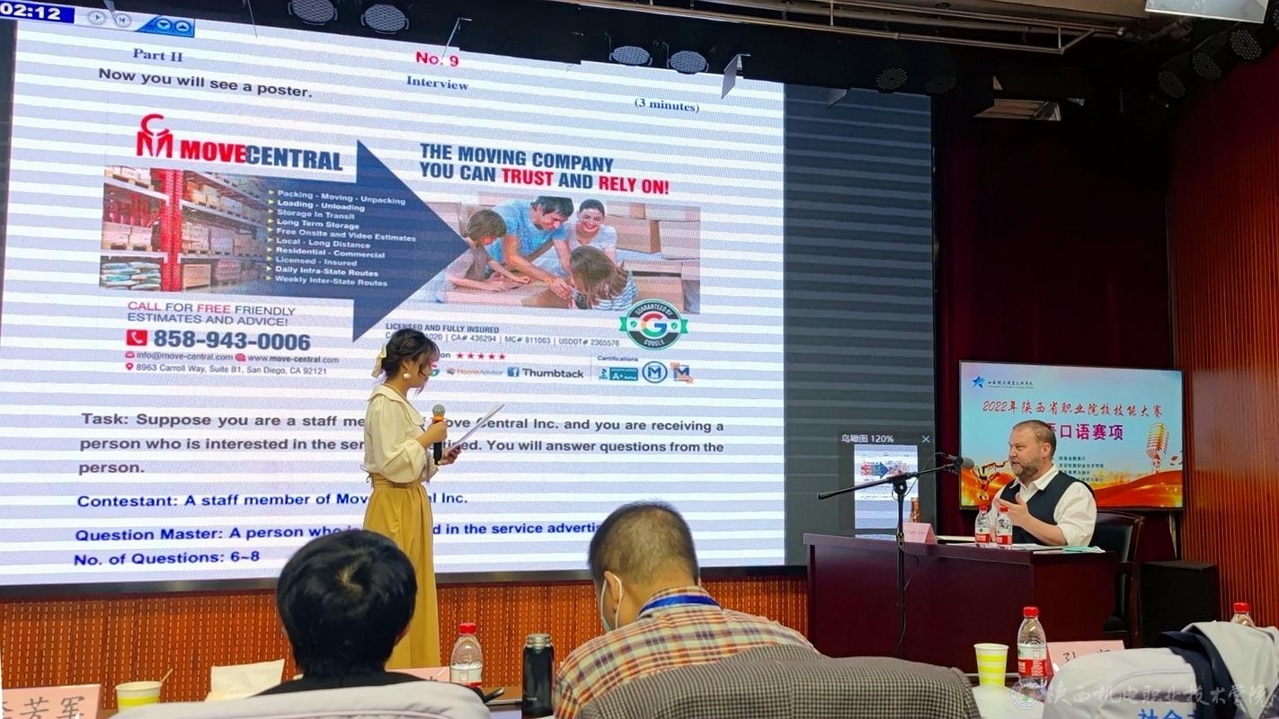 陕西省高职院校技能大赛英语口语赛项旨在提高学生运用英语传播中国文化和职场交际的综合能力,并以此为英语教育领域的教师搭建一个交流英语教学经验、探索英语教学改革的广阔平台,实现“以赛促教,以赛促学”。