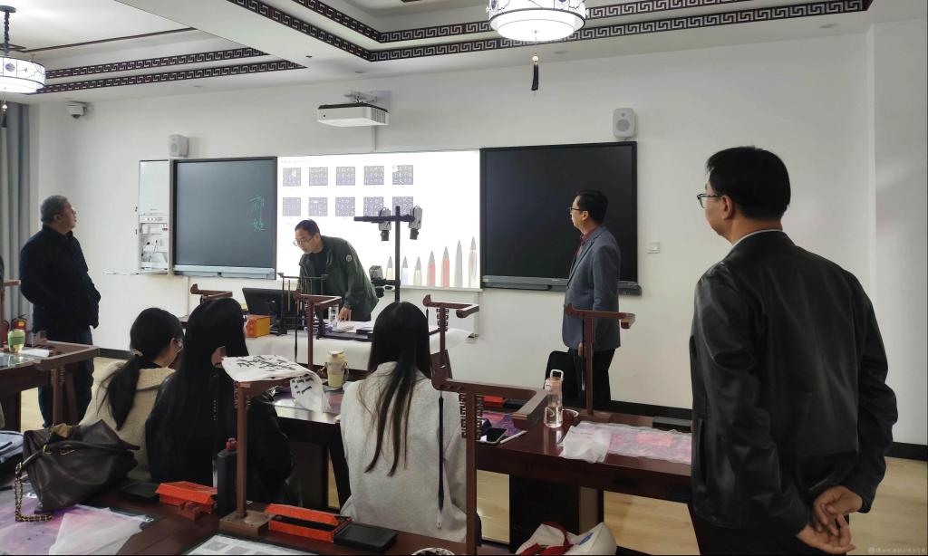 兰拉成院长的带领下,我校教师还参观了宝鸡文理学院语言文字推广基地、智慧书法教室,国家语言文字推广基地执行主任王应龙对基地的建设情况进行了详细介绍,师范素质教育中心主任赵保胜对智慧书法教室的主要功能进行了演示。
