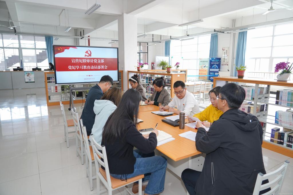 4月15日下午,宣传纪检审计党支部在蟠龙校区图书馆二楼阅览厅召开党纪学习教育动员部署会,会议由支部书记李明主持,全体党员参加。赵珊、张小丽列席会议。