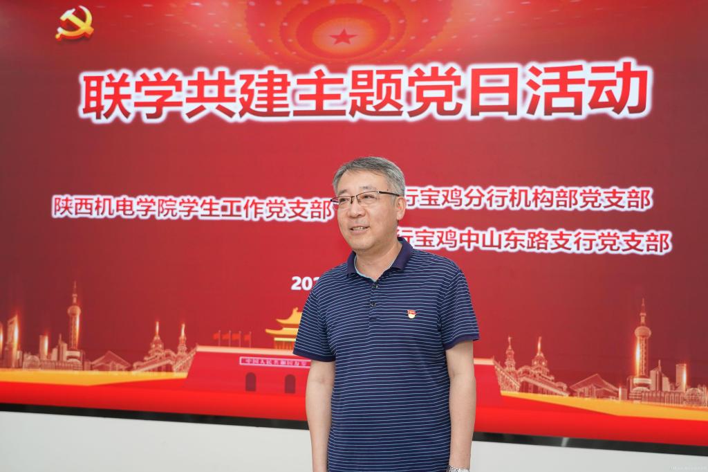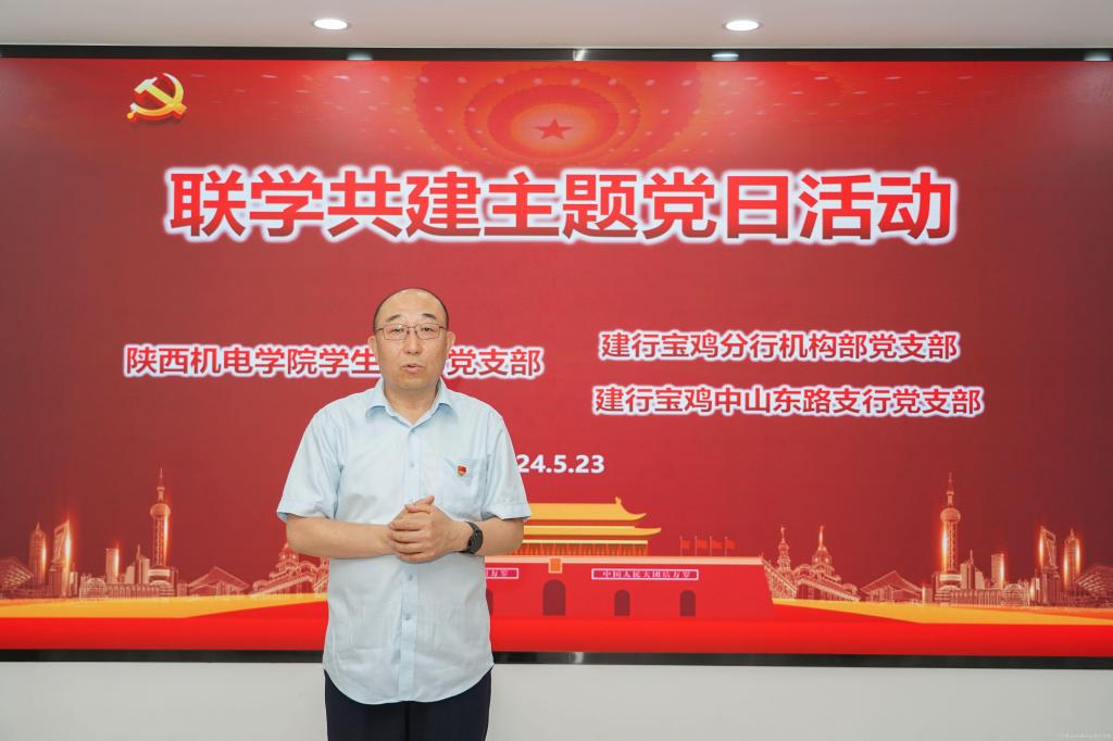 为深入贯彻落实党的二十大精神,以基层党组织为载体,以党建共建为动力,充分发挥各党组织优势,形成优势互补、资源共享的基层党建新格局,5月23日下午,学生工作党支部联合建行宝鸡分行机构部党支部、建行宝鸡中山东路支行党支部在我校蟠龙校区图书馆2楼思政课虚拟仿真教学中心开展“学习榜样 凝聚力量”联学共建主题党日活动,“联学共建”支部全体党员参加,活动由学生工作党支部王建斌主持。